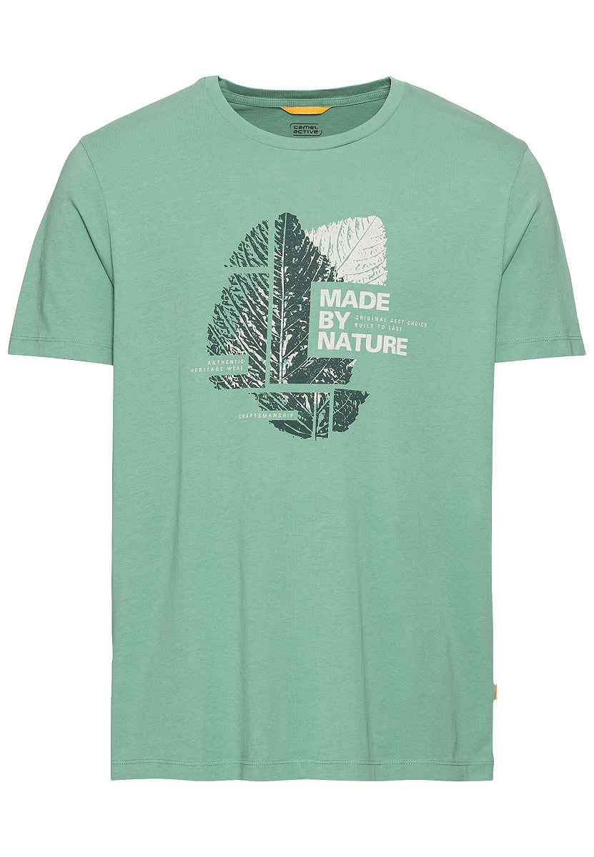 Das T-Shirt von camel active aus 100% Baumwolle kombiniert Nachhaltigkeit mit modernem Design. Mit einem auffälligen Print auf der Vorderseite und einem Logostickerei-Detail auf dem linken Ärmel bietet dieses Shirt den perfekten Mix aus Stil und Komfort.