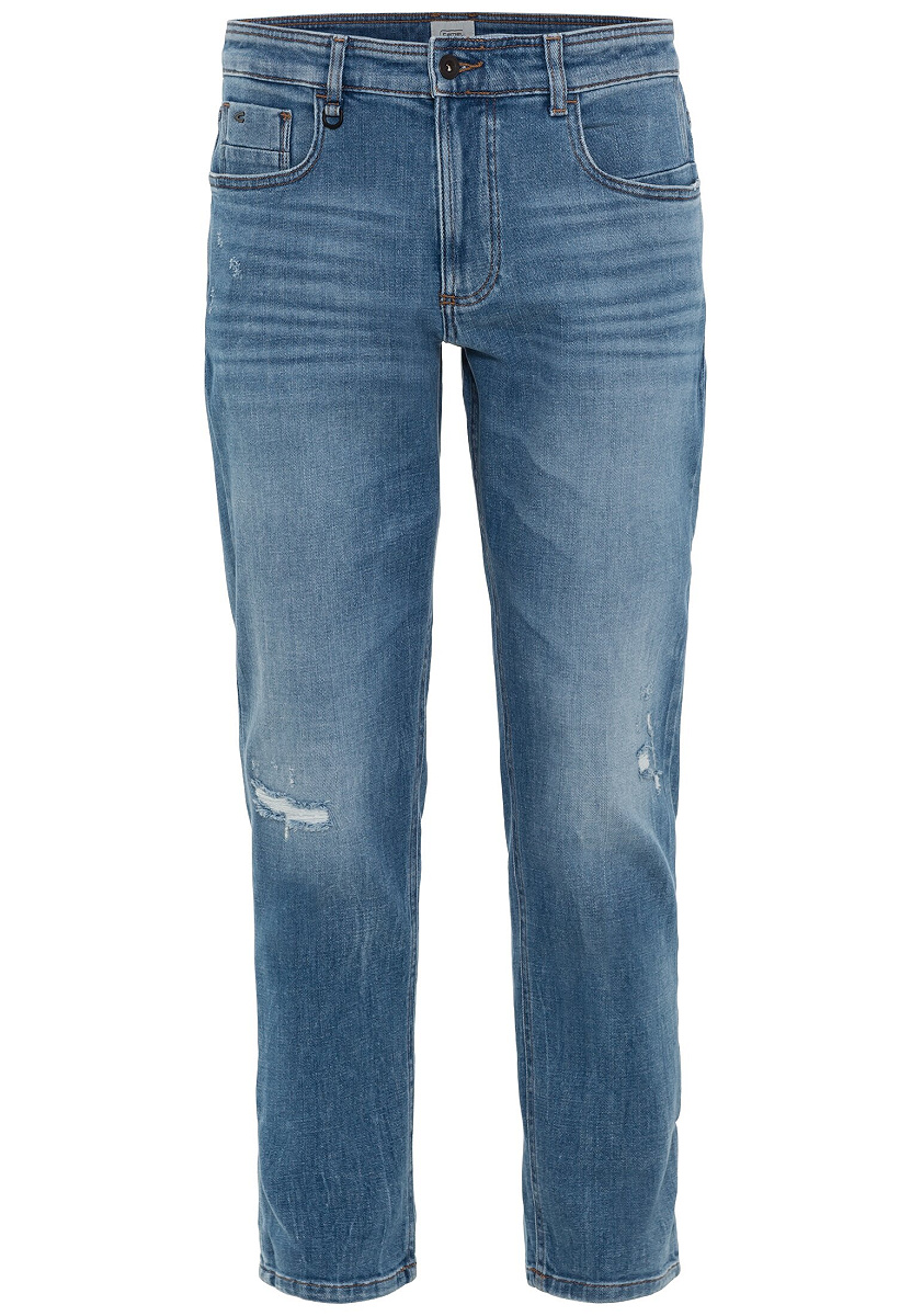 Mit der Tapered Fit Destroyed Jeans mit Smartphone Tasche aus der Frühjahr/Sommer-Kollektion von camel active holst Du Dir eine lässige Herrenjeans in top modernem 6-Pocket-Style mit tiefergeschnittener Smartphone Tasche in den Kleiderschrank. Optisch überzeugt die camel active Jeans in der Farbe Indigo Dyed nicht nur mit einem Vintage Wascheffekt, sondern auch mit stylischem Destroyed-Look. Unterstrichen wird das stilvolle Design von einem camel active Markenlabel am Saum. Überzeugen kann die camel active Jeans nicht nur mit ihrem Look. Durch den Baumwollmix mit 2-Wege-Stretch bietet die Herrenjeans auch in der Freizeit einen hohen Tragekomfort. Ein weiterer Pluspunkt ist die Kordel am Innenbund, die ein unkompliziertes Aufhängen ermöglicht.