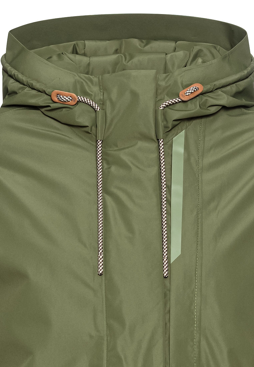 Nachhaltiger, wasserdichter Damenmantel mit teXXXactive® Technologie aus GRS-zertifiziertem Polyester. Winddicht, atmungsaktiv, mit reflektierenden Drucken und camel active Markenlogo auf dem linken Arm – perfekt für Outdoor und City.