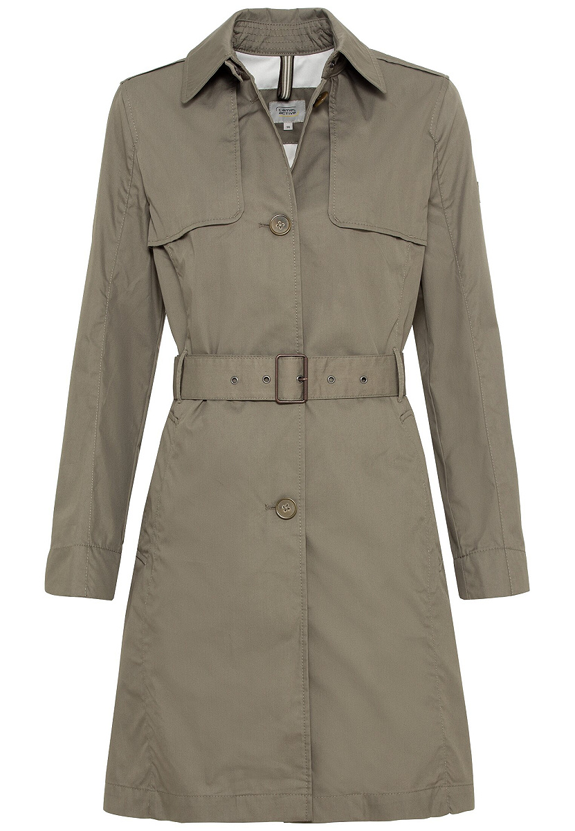 Authentisch, ehrlich und vor allem gut gekleidet - der Damen Trenchcoat ist ein Klassiker. Der schlichte Schnitt und die einfarbige Gestaltung ohne viele Extras gibt dem camel actice Trenchcoat aus der Frühjahr/Sommer Kollektion ein besonderes Flair. Ein bisschen elegant und sehr Retro, so wirkt der Damen Trenchcoat sowohl zur Bürokleidung als auch in der Freizeit. Der Gürtel trägt mit Sicherheit dazu bei, denn ein Trenchcoat sitzt nur dann gut, wenn die Taille angepasst werden kann. Aus einem angenehmen Baumwollmix gefertigt, ist der camel actice Trenchcoat wasserabweisend und winddicht. Auf dem Rücken befindet sich ein camel active Brandlabel.