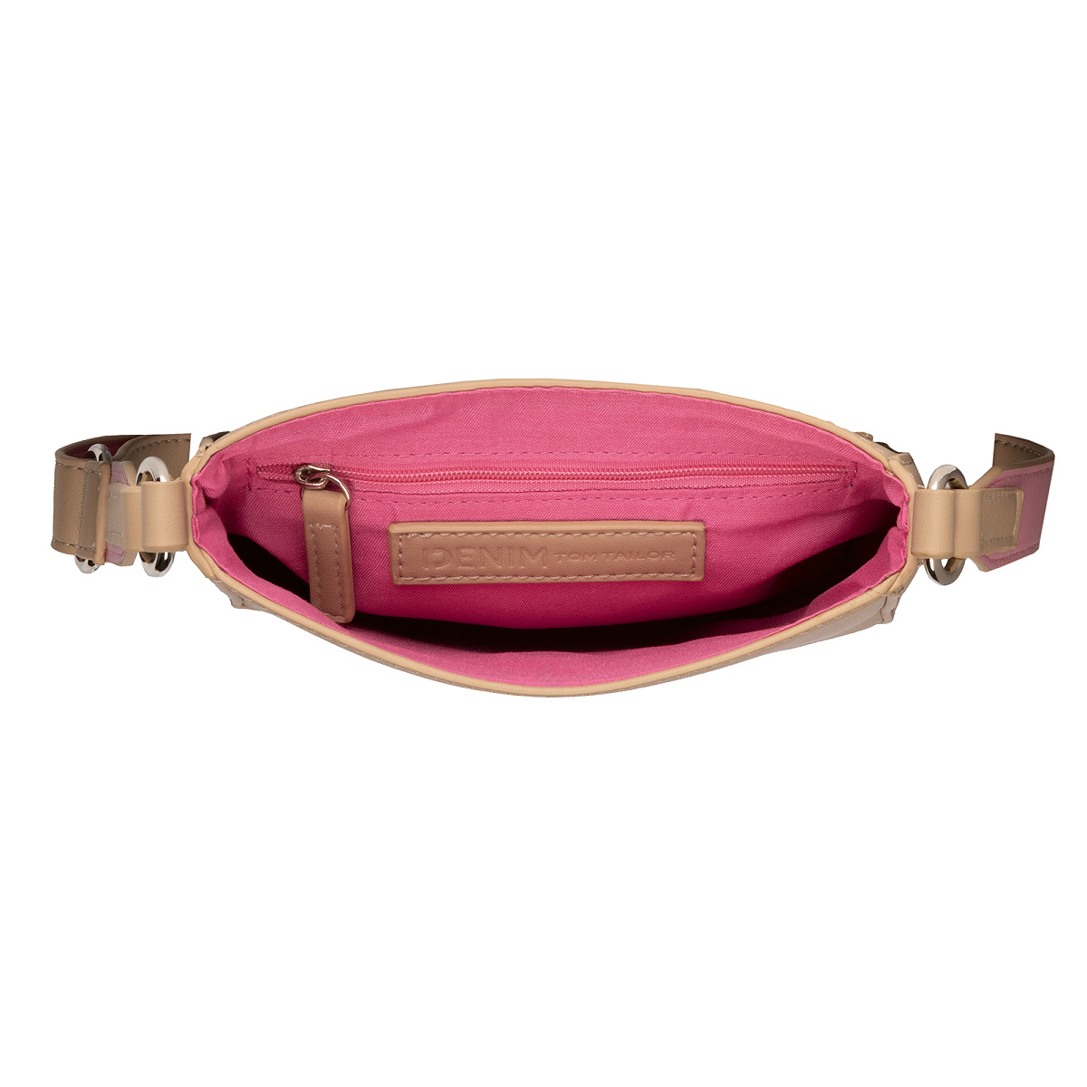 Die besondere Schnittführung mit schräg gearbeitetem Logo Patch und die kontrastfarbige Innenseite der Schulterriemen zeichnen die kleinen Modelle der Denim Tom Tailor Periya Gruppe aus. Hochwertiges Lederimitat rundet das Gesamtbild ab.