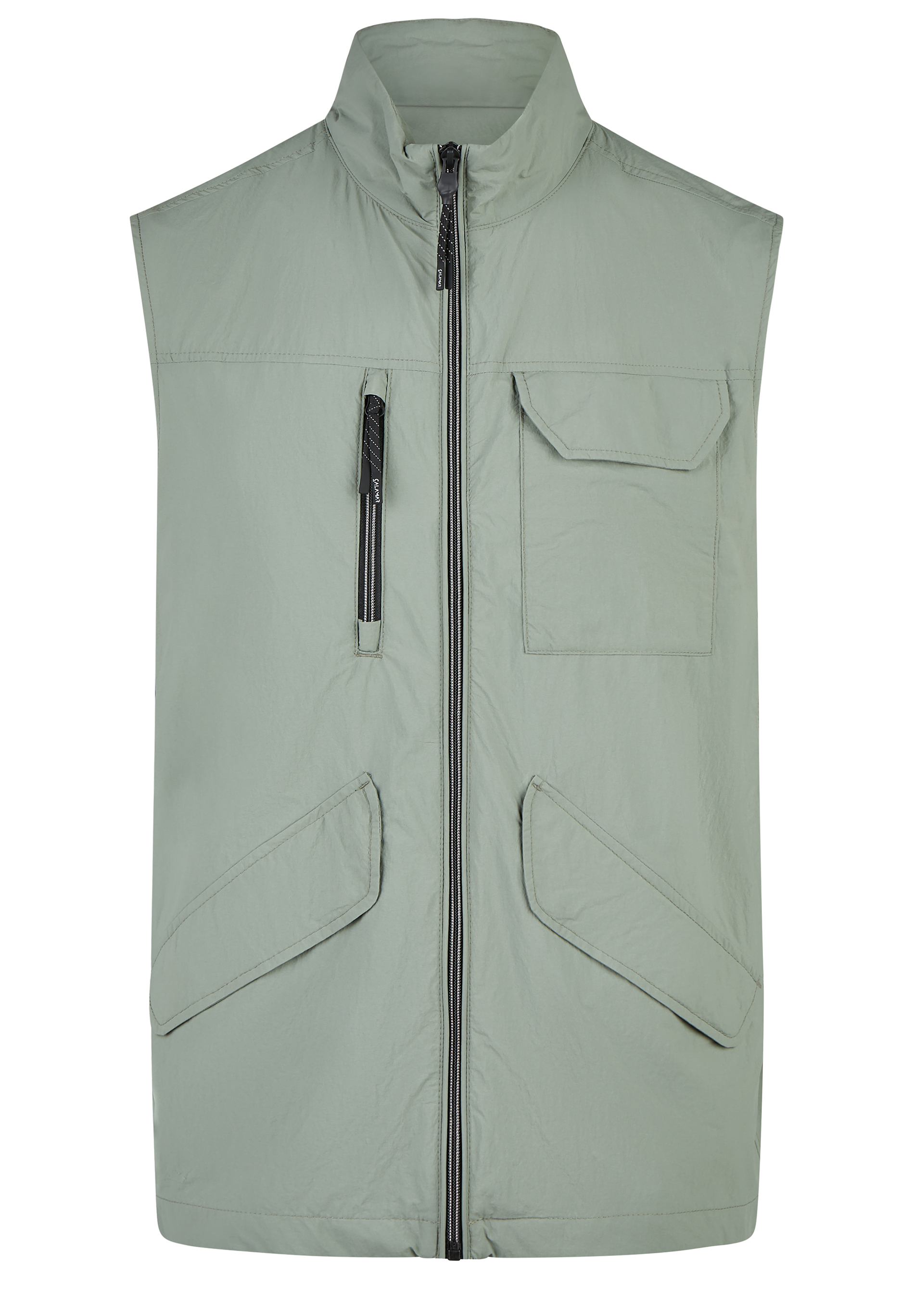 Diese Cotton-Feel Weste von CALAMAR ergänzt Deinen Look um eine sportive und zugleich stilvolle Komponente. Der markante Stehkragen und die klar definierte Silhouette sorgen für moderne Ausstrahlung. Brusttaschen mit Knopf, Fronttaschen sowie eine Innentasche mit Reißverschluss bieten durchdachten Stauraum. Das vollständige Futter garantiert angenehmen Komfort und hochwertige Verarbeitung. Als vielseitige Herrenweste eignet sich dieses Modell ideal für Layering-Looks – funktional, urban und zeitgemäß.