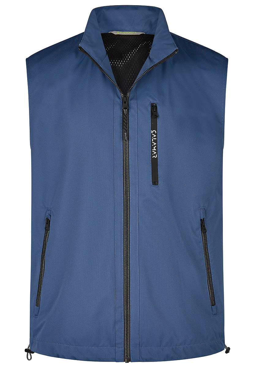 Die Performance-Weste ist der ideale Begleiter für sportliche und anspruchsvolle Männer. Der Jacquard-Strukturstoff mit Membranlaminierung schützt dich vor Wind und Regen, während die verstellbaren Elemente wie der Saum und die funktionale Innentasche mit Reißverschluss für höchsten Komfort sorgen. Die leicht zugänglichen Seitentaschen machen es dir einfach, alles zu verstauen, was du unterwegs brauchst.